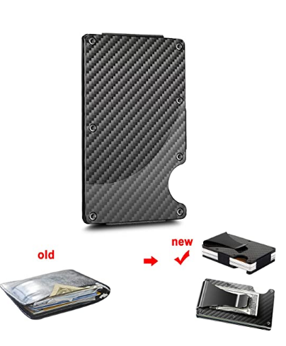 Ultra thin metal wallet. RFID Blocking Credit Card Holder. Slim Carbon fiber Card Case for travel and work. Available in various colors.